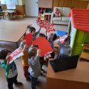 „Pagrandukų“ ir „Nykštukų“ grupių vaikai džiaugėsi galimybe reikšti emocijas naudodamiesi įvairiais buities ir gamtos daiktais, grodami instrumentais, pagamintais iš antrinių žaliavų. Savo pagamintais instrumentais atkartojo muzikos ritmą, garsą, tempą. Vyravo pakili nuotaika. Po spalvotomis kreidelėmis piešė savo ir draugų emocingus veidelius.