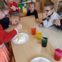 Lapkričio 13 dieną, „Nykštukų“ grupės vaikai aptarė iš šiltų kraštų naujai atkeliavusį vaisių – ,, poną persimoną”. Vaikai pasipuošę oranžine persimono spalva, visą dieną skyrė jam. Sužinojo kuo naudingas mūsų sveikatai šis vaisius ir koks puikus vaistas nuo peršalimo ligų. Vaikai gamino vaisinę puokštę, kurią vėliau visi skaniai ragavo.