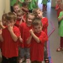 Nuotaikingai, džiaugdamiesi geru oru, laikydamiesi saugių atstumų ir skambant Lietuvos mažųjų žaidynių himnui Petro Avižonio ugdymo centro vaikai atliko „Ąžuolo makštą“ ir taip sudalyvavo RIUKKPA organizuotame Lietuvos mažųjų žaidynių uždaryme.