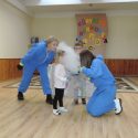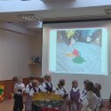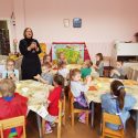 Paskaitėlės metu vaikams buvo rodomi filmukai: „Kaip taisyklingai valytis dantukus“ ir apie „Ėduoniuką ir Bakteriuką“. Tai pamokantys filmukai, kai bakterijos apsigyvena berniuko, valgančio labai daug saldumynų ir nemėgstančio valytis dantukų, burnytėje. Kadangi filmas „Ėduoniukas ir Bakteriukas“ vaikams labai patiko, priešmokyklinukai patys suvaidino šį filmuką. Po mažo spektakliuko, vaikai klausydami Lauros dainelės apie dantukus pasigamino linksmas dantukų karūnėles. Šis sveikatinimo užsiėmimas visiems buvo labai nuotaikingas, įdomus ir reikalingas.
