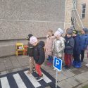 Su vaikais žiūrėjome filmukus „Policijos bičiulio Amsio patarimai“, aptarėme kaip  svarbu laikytis kelių eismo taisyklių, kaip taisyklingai pereiti gatvę, ką privalo turėti ir žinoti vaikai važiuojantys dviračiais. Pamokėlės metu įgijo praktinių žinių kaip saugiau pereiti gatvę. Už aktyvų dalyvavimą vaikai apdovanoti atšvaitais.