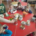 Lapkritis darželyje – arbatos gėrimo mėnuo. Sveikatos specialistė vedė ugdomąsias pamokėles “Saulės zuikučių” ir “Nykštukų” grupės vaikams „Arbatą aš geriu – sveikas ir žvalus esu“. Šios veiklos tikslas – supažindinti vaikus su arbatos, medaus, citrinos, imbiero sveikatinamuoju poveikiu, natūraliais būdais stiprinti imunitetą šaltuoju metų periodu.