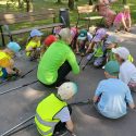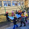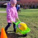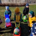 Po Šv.Velykų, vyresniųjų grupių vaikai rinkosi centriniame miesto parke prie didžiulio margučio. O margučio būta ne bet kokio, o labai išradingo! Margutyje buvo paslėptos užduotys: surasti paslėptus margučius ir ieškoti pirmųjų pavasario požymių. O tai buvo nelengva, bet džiugu, kad vaikai suskubo atlikti ir puikiai atliko užduotis. Po užduočių rinkosi į koncertinę areną ir smagiai sugrojo „kinderių- barškučių“ orkestre. O mažiausieji ugdymo centro kiemelyje ieškojo, rinko ir vežiojo karučiais nepaprasto dydžio margučius. Šventė pralėkė labai greitai, linksmai, nestigo nei šilumos, nei džiugių emocijų😊