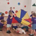 „Žirniukų“ – „Obuoliukų“ ir „Smalsučių“ – „Pelėdžiukų“ grupės ugdytiniai dalyvavo respublikiniame RIUKKPA projekte “Maži ir dideli-sportuojame visi”. Projekto tikslas – stiprinti (skatinti) bendravimą ir bendradarbiavimą tarp skirtingo amžiaus vaikų fizinio ugdymo užsiėmimuose.Iš pradžių lyg ir buvo nedrąsu mažiesiems, bet pradėjus judėti smagu buvo ne tik didesniems, bet ir mažiesiems. Sportuojant netrūko nei judesio, nei juoko ir gerų emocijų😊