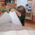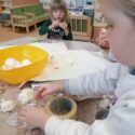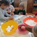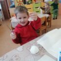 3 m. vaikai gavo iššūkį – sukonstruoti sniego senį iš duotų įvairių medžiagų: popieriaus, folijos, siūlų, klijų, pagaliukų, pakavimo granulių, poliesterio rutulių, lipnios juostos ir kt. Vaikai tyrinėjo medžiagas, plėšė, karpė ir visaip kitaip tikrino jų galimybes, tokiu būdu tapdami savotiški tyrinėtojai – mokslininkai (S raidelė iš sutrumpinimo STEAM – “Science”). Ar pavyko sukonstruoti sniego senį? Galbūt ne. Bet jie konstravo ir įgyvendino savo kūrybines idėjas bei galias (raidelės T ir A, kas reiškia technologiją ir kūrybiškumą). Bet svarbiausia – buvo laimingi.