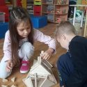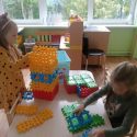 Kiekvienos grupės vaikai ruošė, gamino ir kūrė savo grupės unikalų, pagarbos, gerumo ir supratingumo tolerancijos NAMĄ-bloką. O vėliau visus grupių statinius apjungėme į vieną bendrą, didelį, daugiaaukštį, daugiabutį NAMĄ! Šis NAMAS – tai mūsų bendruomenės atspindys. Tokiame NAME tikrai gera gyventi!