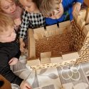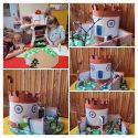 Žiūrėdami į pilies formą patys ją kūrė ir dėliojo iš tuščių panaudotų dėžučių ir ritinių. Po to pasiskirstę komandomis ir pareigomis ėmėsi darbo.