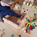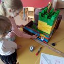 Mažieji konstruktoriai rinkosi įvairias medžiagas – Lego kaladėles, antrines žaliavas, gamtinę medžiagą, plastiliną. Statydami stebėjo vaizdus kompiuterio ekrane, nuotraukose, ieškojo pilies lokacijos Lietuvos žemėlapyje. Įvairiais matų vienetais matavo bokšto aukštį, plotį, aikštės perimetrą.