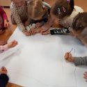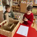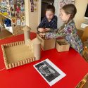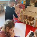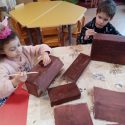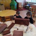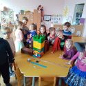 Vaikai pabandė nupiešti brėžinį, padedami mokytojos padėjėjos Jolitos, iš medžio ir kartono atliekų suklijavo sienas, dekoravo popieriaus atliekų kvadratėliais, sukūrė Lietuvos vėliavos aplikaciją.