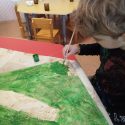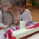 Taip pat vaikai aplikavo „žolę“, žirgų gamybai lankstė popieriaus juosteles. Mokytojai padedant bandė nubraižyti ir išmatuoti pilies statinio matmenis.