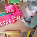 Kas gi nepažįsta GEDIMINO PILIES? O „Naminukų“ grupės vaikams buvo įdomu sužinoti ir apie kitas Lietuvos įžymias pilis. Kartu su vaikais interaktyvioje lentoje apžiūrėjome, aptarėme pilių nuotraukas. Labiausiai patikusią – Raudonės pilį ir nutarėme pastatyti. Kaip tikri architektai pirmiausiai nubraižėme pilies planą, suskaičiavome pilies bokštus, sutartiniais ženklais pažymėjome aukščiausius. Susitarėme iš kokių priemonių statysime.