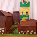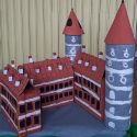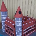 Pilies statybai naudota: antrinės žaliavos, natūralūs akmenys, medžio šakelės, guašas, spalvotas popierius, karšti klijai, lankstiniai iš popieriaus.