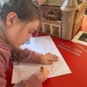 Darbo eiga: pagrindinį pilies pastatą, tvorą, spalvino vaikai.