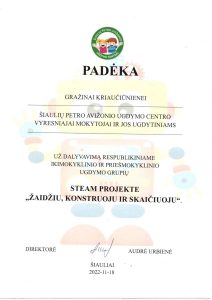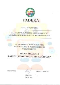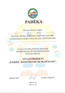 2021 m. kovo 4 d.– balandžio 2 d. vyko Lietuvos ikimokyklinio ugdymo įstaigų virtuali kūrybinių darbų paroda saugaus eismo tema: “AŠ ŽINAU KELIŲ EISMO TAISYKLES – O TU?” Organizatoriai – Vilniaus lopšelis/darželis „Ozas“ ir Vilniaus apskrities vyriausiojo komisariato kelių policijos valdyba kartu su Lietuvos policijos bičiuliu AMSIUMI. Mūsų įstaigą atstovavo „Saulės zuikučių“ grupės ugdytinis Herkus, nupiešęs „Šviesoforo spalvas“.