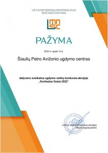 O kad šokio dienai pasiruošti būtų lengviau, buvo pristatytas „Sveikatiados“ draugės – „SportsHouse“ sporto klubo asmeninių ir grupinių užsiėmimų instruktorės Lauros Tumynaitės sukurtas šokis. Iš mūsų įstaugos šiame konkurse dalyvavo „Žirniukų“ grupės ugdytiniai, sušokę būtent šį šokį bei „Naminukų“ grupės ugdytiniai su „Letkis“ šokiu.