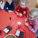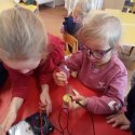 „Nykštukų“ grupės vaikai vykdė STEAM veiklą „Elektros energija“. Ugdytiniai suvokė, kad elektra ateina ne tik laidais – elektrino balioną į plaukus, vilnonio audinio skiautę, stebėjo, kaip balionas „ridena“ skardinę, kelia plaukus, popieriaus skiauteles. Vaikai nustebo sužinoję, kad elektros energijos yra daržovėse ir vaisiuose. Pasijuto tikrais elektrikais, jungdami grandinę, uždegdami diodą ir lemputę, susipažino su prietaisu multimetru.