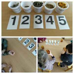 Vasario mėnesį “Naminukų” grupės vaikai dalyvavo „Arbatos popietės veiklose“ ir pasitelkę visus savo pojūčius tyrinėjo 5 rūšių arbatas, domėjosi jų naudingomis savybėmis, rinko skaniausią arbatą.