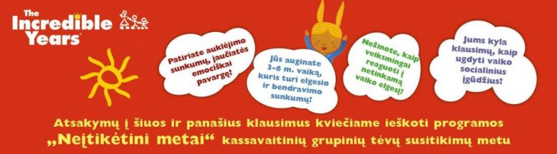 Kviečiame Šiaulių miesto savivaldybės tėvelius dalyvauti programoje „Neįtikėtini metai” (The Incredible Years®)! Programa yra skirta tėvams/įtėviams/globėjams, auginantiems 3–6 metų amžiaus vaikus, turinčius elgesio ir emocijų sunkumų. Programa įgyvendinama daugiau nei 20 pasaulio šalių, moksliniais tyrimais įrodytas ilgalaikis jos efektyvumas. Programa padeda tėvams: