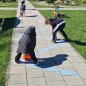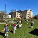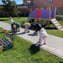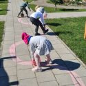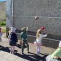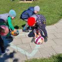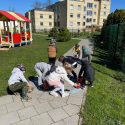 Vaikai žaidė su kamuoliais, atliko mankštą, rideno vingiais,stengėsi nenukrypti nuo linijų,pavadino geometrines formas ir rideno ar mušinėjo kamuolius jomis. „Kamuolių fiestoje” ugdytiniai iš „Palėdžiukų“, „Žirniukų“, „Obuoliukų“ grupių žaidė įvairius judesių koordinavimo, mėtymo į taikinį žaidimus