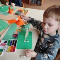 Grupėje skaitėme E. Daciūtės knygą „Lapė yra Laimė“. Pagal knygų siužetus, vaikai kūrė darbelius, atliko įvairias užduotis: lankstė, lipdė, karpė, dėliojo, klijavo, konstravo, matavo, skaičiavo, mąstė ir diskutavo.
