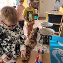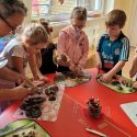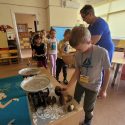 Priešmokyklinio ugdymo grupė „Saulės zuikučiai“ vaikai susipažino ir atliko STEAM bandymus su grybais. Paąžuolis baravykas pats pasisiūlė vaikams į draugiją, nes augo patvoryje!  Iš viso radome 15 baravykų – susipažino su grybo sandara, dydžiu, forma, kvapu ir grybo „gyventojais“… Vaikai sužinojo grybo pavadinimą, užrašė interaktyvioje lentoje, įtvirtino skaičiavimo,  matavimo, lyginimo žinias. Pakartojo geometrinių formų  sąvokas ir mokėsi prilyginti atitinkamai grybo formai. Atliko eksperimentus: džiovinimas saulėje, popierinės servetėlės stebėjimas (nuo drėgmės šlampa, nusidažo), grybo stebėjimas uždarame  maišelyje ir  vandens lašelių kaupimasis ant maišelio sienelių, bei formos keitimo. Pasiūlėme pabandyti pasėti, nes labai norėjo rasti sėklų.  Vaikai tikisi po savaitės rasti išdygusius!