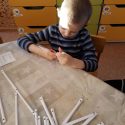 Gilinantis į inžinieriaus profesijos pažinimą, „Smalsučių“ grupės penkiamečiai turėjo galimybę konstruoti iš pačių pasigamintų popierinių tūtelių, sutvirtindami jas varžtais. Konstravimo darbai buvo susiję su raidžių pažinimu, formuojant kitokį matymą ir mąstymą. Vaikai yra įpratę matyti „O“ raidę apskritimo pavidalu, todėl sukonstruoti ją iš tiesių formų buvo iššūkis. Pažinti laužytų formų „B“ raidę taip pat reikėjo kitokio mąstymo. Prieš tvirtinimų pradžią vaikai patikrino raidės konstrukciją, nusibrėždami specialioje kortelėje ir suskaičiuodami, kiek tūtelių bei kiek sujungimo varžtų reikės. Kai kurie vaikai, tokiu pat principu tą atliko ant medinių kaladėlių su vinutėmis, sukurdami raides iš gumyčių. Vaikams patiko patiriama sėkmė, kuria džiaugėsi sukonstravę savo vardo ar kitą raidę. Pasidavę kūrybai ir improvizacijai kai kurie vaikai sukūrė malūną, medį, eglę, geometrines figūras.