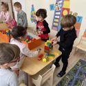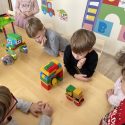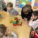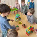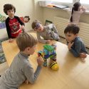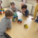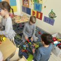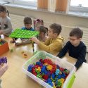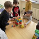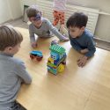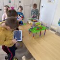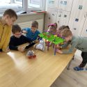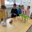 Iš kaladėlių vaikai konstravo labirintus su viadukais. Pro juos turėjo tilpti pravažiuoti robotukas „Photon“ ir du robotukai „Bee bot“. Vaikams teko kelis kartus perkonstruoti, kol viadukai tapo tvirti. Išbandė lanksčiąją ir standžiąją vilktis. Visi nutarė, kad su standžiąją vilktimi kaladėlių krovinį robotukams gabenti per viadukus yra lengviau.