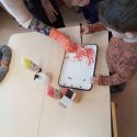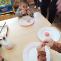 Iš sodos, muilo ir dažų vaikai, kartu su auklėtoja, suminkė moliūgus, į vidų įdėjo sėklyčių. Po to atliko eksperimentą su actu, vaikai lašino actą ir stebėjo, kaip putoja ir tirpsta moliūgėliai. Vaikams veikla patiko, noriai joje dalyvavo, džiugiai stebėjo kokia cheminė reakcija vyksta.