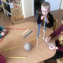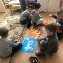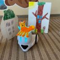 Ne vieną savaitę buvome pasinėrę į Evelinos Daciūtės pasakos pasaulį su knyga ir pagrindine pasakos veikėja lape, kuri tapo didžiausia vaikų draugė. Pirmiausia vaikai džiaugėsi knygelės spalvingomis iliustracijomis ir pradėjo svarstyti, kas yra laimė? Laimė tai – viskas ir jos spalva oranžinė, o kvepia labai saldžiai( vaikų mintys). Knygelę skaitėme lėtai, patogiai įsitaisę vis kitoje grupės patalpoje. Vienas iš ugdytinių pasiūlė pasidaryti lapę – laimės talismaną, su kuria drauge skaitysime knygelę.