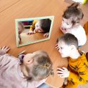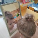 „Pagrandukų“ gr. ugdytiniai pažįsta save ir kitus tyrinėdami atvaizdus įvairiose veiklose. Viena iš jų – savęs tyrinėjimas veidrodyje bei veiklos plėtojimas panaudojant veidrodį atskirų kūno dalių piešimui.