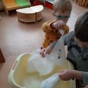 Šios tiriamosios veiklos metu vaikai suprato, kad sniegas šiltame kambaryje greitai tirpsta ir pavirsta į vandenį. Ugdėsi kūrybingumo įgūdžius, probleminį mąstymą.