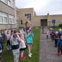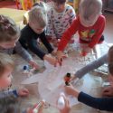 „Pagrandukų“ ir „Nykštukų“ grupių vaikai džiaugėsi galimybe reikšti emocijas naudodamiesi įvairiais buities ir gamtos daiktais, grodami instrumentais, pagamintais iš antrinių žaliavų. Savo pagamintais instrumentais atkartojo muzikos ritmą, garsą, tempą. Vyravo pakili nuotaika. Po spalvotomis kreidelėmis piešė savo ir draugų emocingus veidelius.