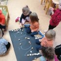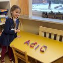 Sausio 11 d. vaikučiai su grupių mokytojomis aptarė kokie žodžiai turi stebuklingų galių. Kas guodžia, pastebi, ištiesia pagalbos ranką ar nuramina. Minčių buvo kuo įvairiausių. Ugdytiniai dėkoja už skanią košę, įdomią pamokėlę, užrištą šaliką, už pasektą pasaką, už piešinį, mankštą, gražią dainą. Vėliau vaikai iš įvairių priemonių konstravo, statė, piešė, lipdė žodelį AČIŪ.