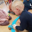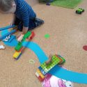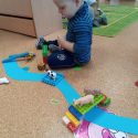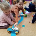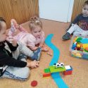 Iš įvairios statybinės, konstrukcinės medžiagos vaikai statė tiltus per upę gyvuliams. Konstravo valtis, kad gyvuliukai galėtų plaukti. Įgijo naujų konstravimo, aplinkos pažinimo žinių, lavėjo kalba, žodynas pasipildė naujais žodžiais ir sąvokomis.