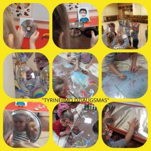 Įvairiose darželio ugdymosi erdvėse, pasitelkiant įvairaus dydžio veidrodžius, kitus daiktus, atspindinčius atvaizdus vaikai tyrinėjo, lygino save ir kitus.