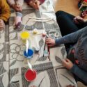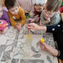 Ar vanduo gali keliauti? Kaip tai įmanoma? Vaikai pripylė vandens į stiklines, į tris iš jų įmaišė dažų, dvi stiklinės liko tuščios. Suvynioję popierinę servetėlę tuščias ir pilnas talpas sujungė tarsi vamzdžiais ir stebėjo kokie procesai vyksta. Spalvotas vanduo ėmė kilti ir lašėti į tuščius indus, bet vanduo buvo švarus. Vaikams paaiškinome, kad tas reiškinys vadinasi – filtravimas. Po kelių valandų, prisipildžius tuščioms talpoms (susilyginus slėgiui), vanduo nustojo lašėti.