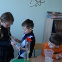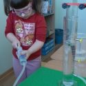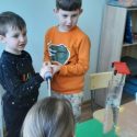 „Pelėdžiukų“ gr. vaikai išbandė eksperimentą ,,Vanduo gali perduoti energiją”. Ugdytiniai išbandė, kad vandens negalima suspausti, jis juda stumiant jį ir perduodamas spaudimas- jėga. Jėga iškelia stūmoklį su mašinėle.