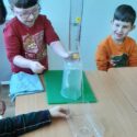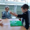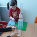 Vaikai išbandė ir sužinojo, kad kuo aukštesnis vandens lygis virš skylės tuo didesnis vandens spaudimas, vanduo iššauna su ilgesne čiurkšle iš apatinės skylės.