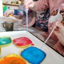 Stebėjo, kaip susilieja spalvos ir gaunasi įvairūs atspalviai. Vaikai sužinojo naują sąvoką cheminė reakcija, pagalbinių medžiagų, priemonių pavadinimus. Veiklos pabaigoje kūrė didelius, spalvotus vulkanus.